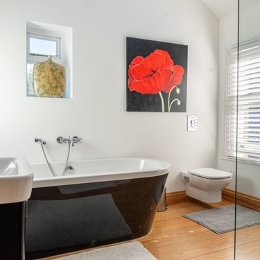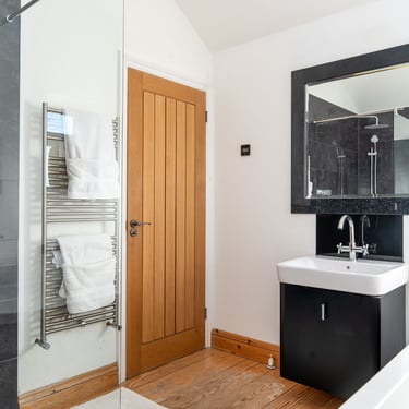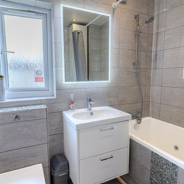 Modern bathroom with bath and walk-in shower - designed to meet a range of needs.